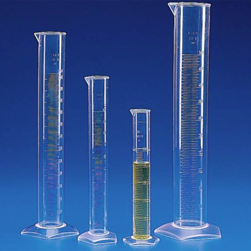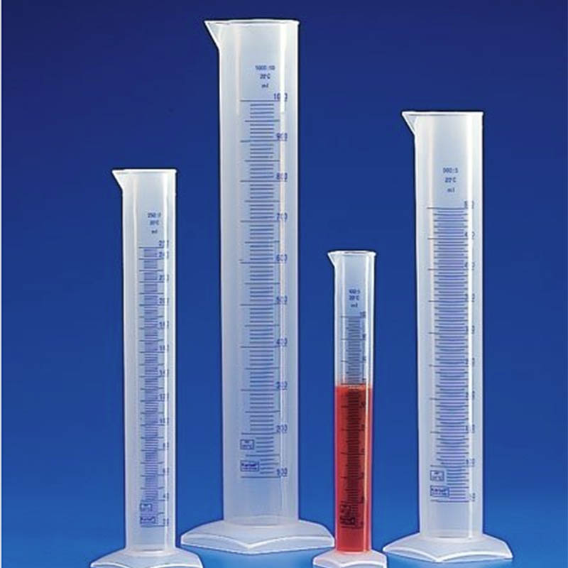 7. 화학 저항성 플라스틱 측정 실린더 : 부식성 물질 취급을 위해 화학적으로 내성 물질로 만든 실린더.